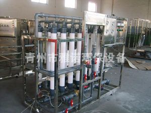 為了更好地保護反滲透設備,延長設備的壽命,提前處理原水,用活性炭和石英砂過濾去除大粒子雜質,用離子交換樹脂軟化去除水中的